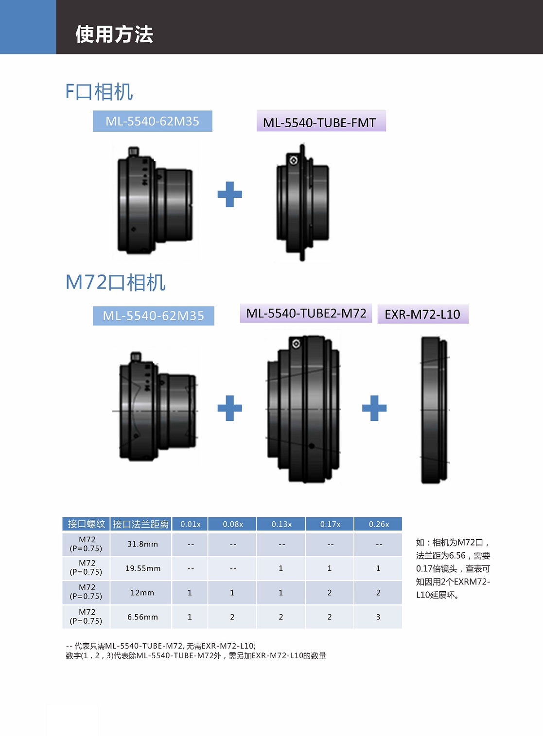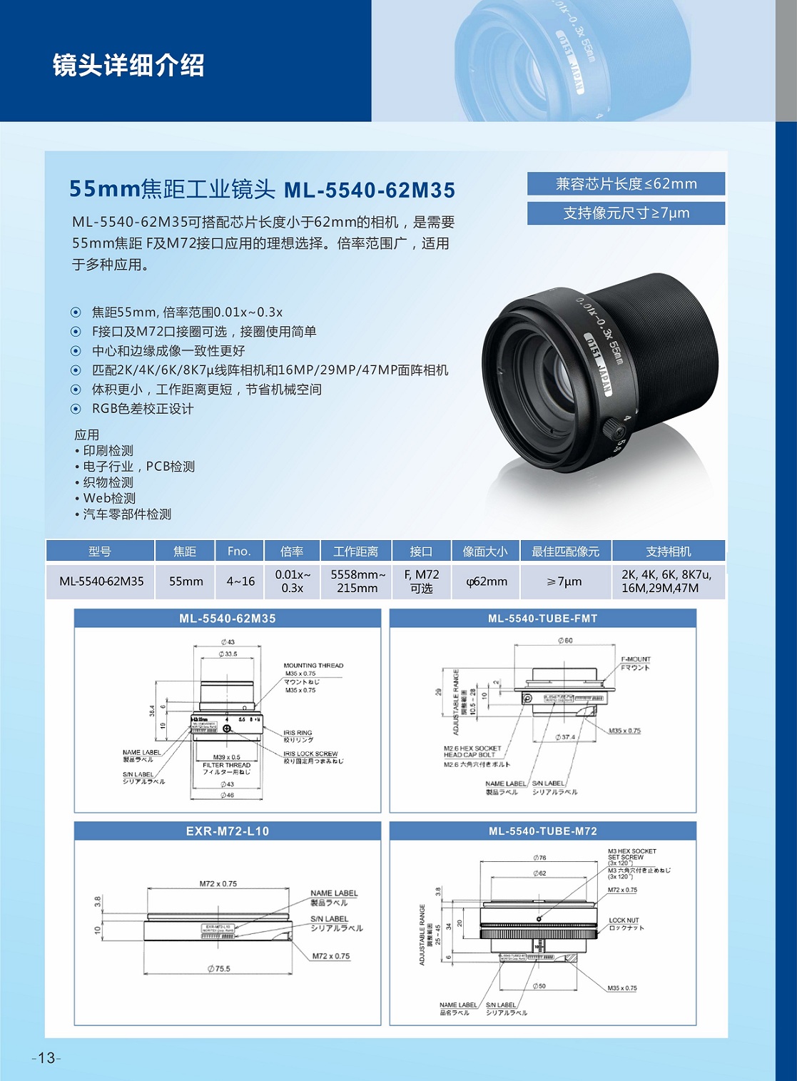 55mm焦距 F及M72接口應用的理想選擇。倍率范圍廣,適用