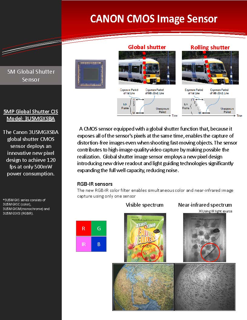 The Canon 3U5MGXSBA global shutter CMOS sensor deploys an innovative new pixel design to achieve 120 fps at only 500mW power consumption.