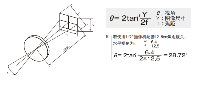 在物距為有限的情況下,視野便能通過下述公式計算出來。
