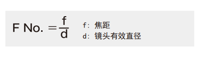 光闌指數(F)是影像亮度的一個表征。數值越小,亮度越高。通過焦距和鏡頭的有效直徑之比可以求出光闌指數。