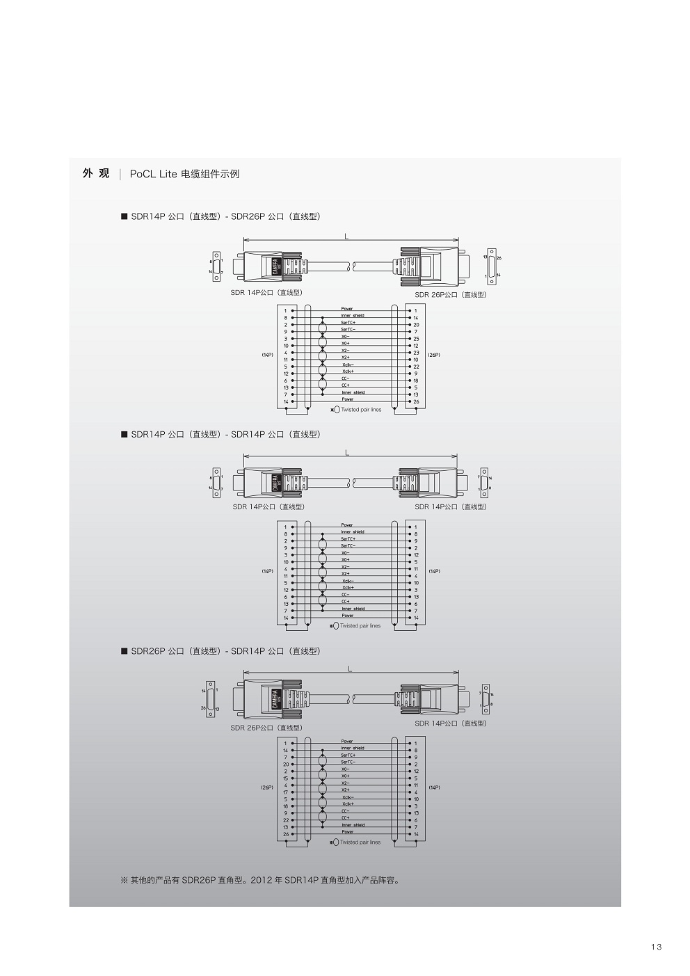 PoCL Lite 電纜依照 Camera Link 連接器規格 2.0,支持正式發布的新規格的電纜。