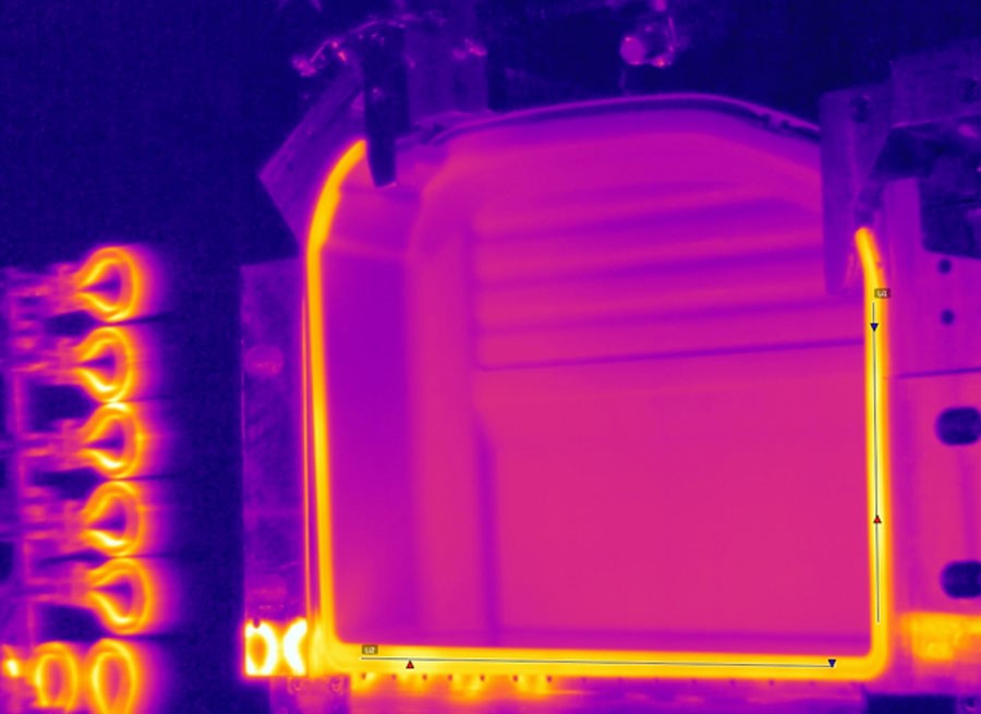我們利用非接觸式紅外熱像儀來測量來自工件加熱部分的熱輻射。我們可以看到焊縫的實際溫度曲線,并評估它是否達到了在零件焊接之前形成牢固粘合的適當溫度。如果我們沒有監測塑料的焊接情況,就會出現冷點,當焊接在一起時,可能會出現虛焊或根本沒有粘合。