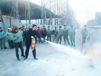 隨后公司安全員向參加消防演習的各應急小組進行了現場消防培訓,具體講解了滅火器材的種類及其性能、適應火種及其操作要領,講解完畢后由員工進行現場操作進行消防疏散和模擬滅火演習。此次模擬主要目的是驗證消防應急預案的可行性和符合實際情況的程度和提高廣大員工自我救護的能力和科學逃生的能力;培養員工緊急遇險時的互助精神和逃生能力;使大家能真學、真會、真懂、真用,熟練掌握使用滅火器的要領。