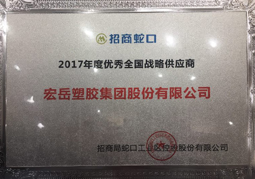 宏岳繼連續5年榮獲中國房地產開發企業500強首選供應商之后,宏岳集團憑借過硬的產品質量和優質的客戶服務,再次受到招商蛇口的高度認可,榮獲招商地產2017年度優秀全國戰略供應商。