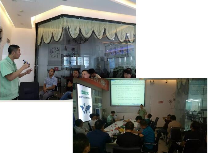 會議第二天,宏岳1+事業部運維經理,從市場推廣方法、渠道建設、門店裝修設計、施工定價及人員管理等方面,為現場客戶做了深度的剖析與分享。
