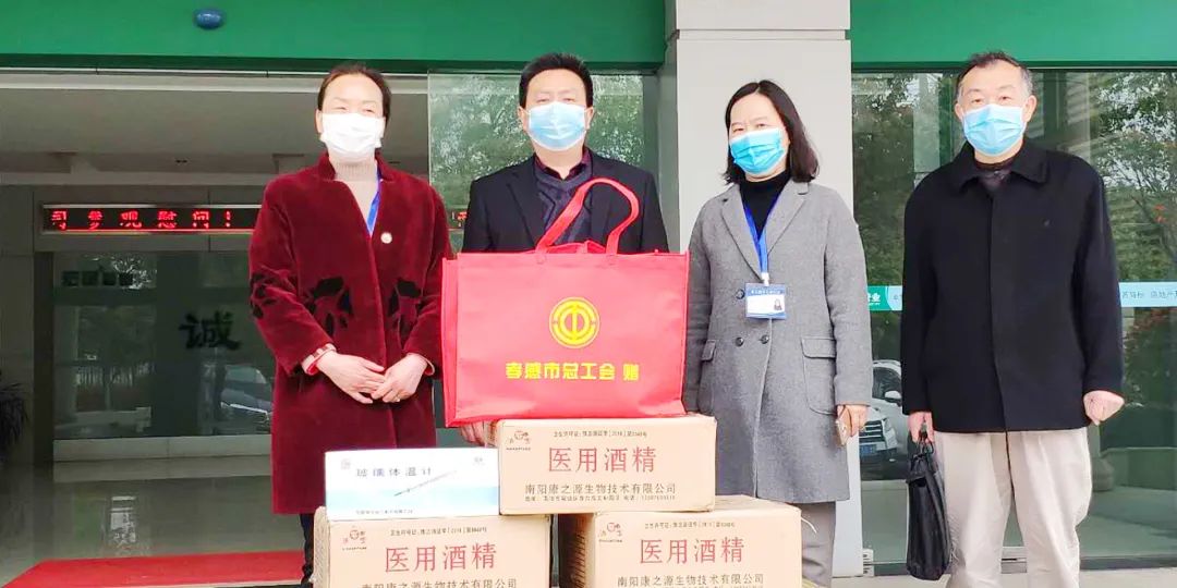 2020年4月2日,孝感市工會黨組書記常務副主席孫淑萍、市工會副主席肖繼玲、孝感高新區工會主席共同前往湖北宏岳塑膠有限公司慰問調研并向公司贈送了一次性醫用口罩、醫用酒精、水銀溫度計等防疫物資。