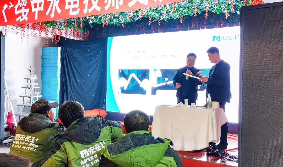 11月16日,宏岳1+綏中服務中心水電技師交流會在綏中海王府大院召開,會議吸引了近百位水電技師前來相互交流、探討學習。