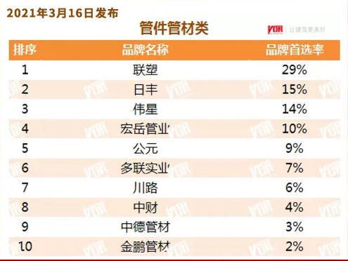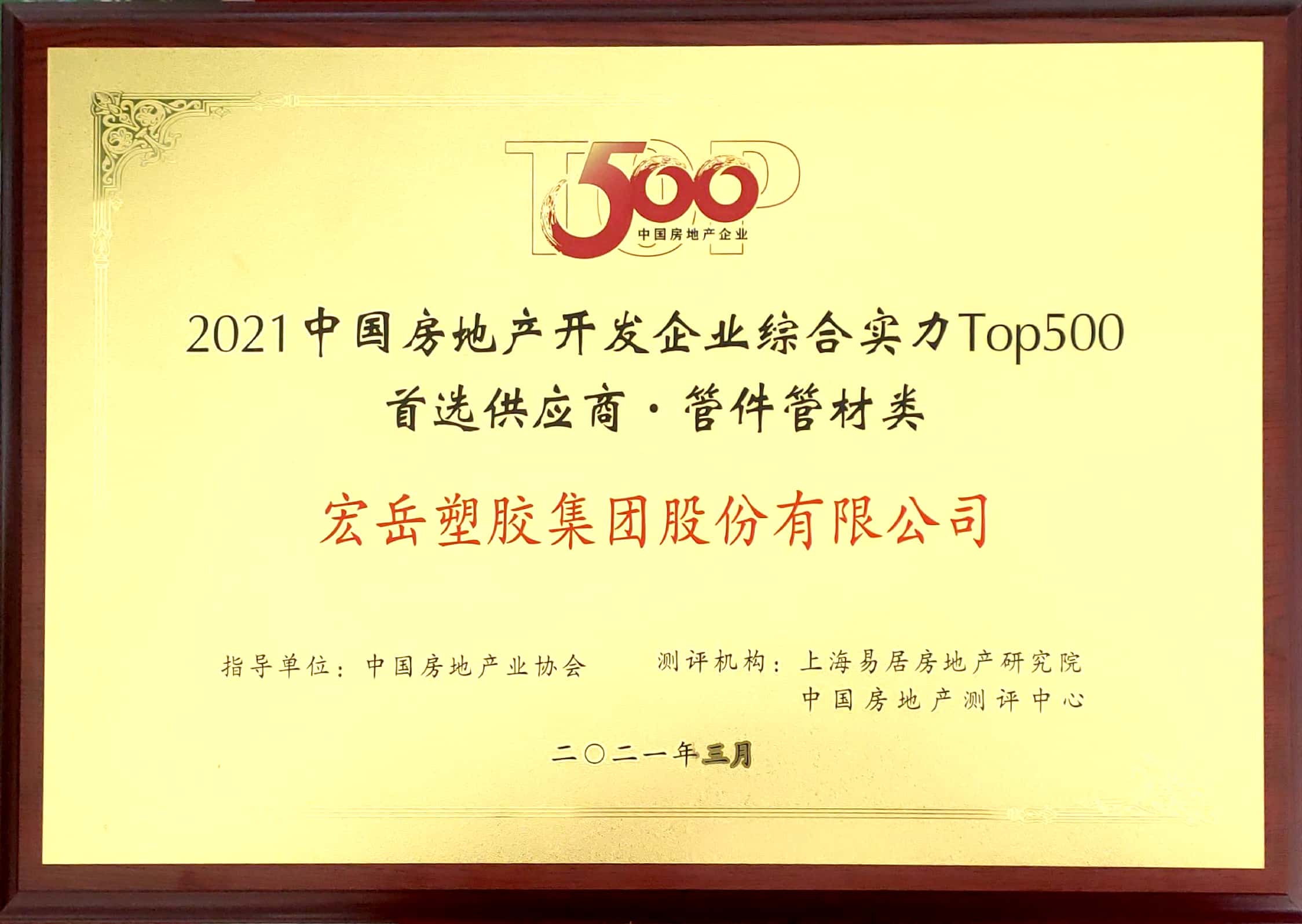 宏岳塑膠集團2014-2021連續8年蟬聯中國房地產500強首選供應商品牌,品牌首選率榮登前五。