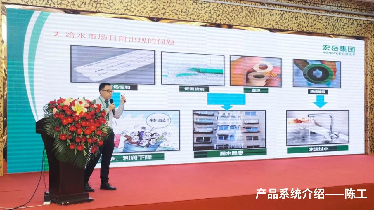 本次會議,宏岳塑膠集團副總經理崔總及技術研發工程師與來賓們逐一分享了《宏岳集團營銷服務及華南區域發展規劃》、《PE-X中央配水系統簡介與應用》、《PVC-UH給排水系統及井壁管道系統應用介紹》、《PE-RT(II)管道系統應用介紹》主題內容,通過詳盡的講解及現場演示,讓與會客戶對宏岳品牌及產品有了更深入的了解,得到了嘉賓們的熱烈關注。