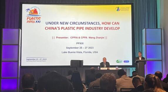 2023年9月25-27日,由歐洲PE100+協會、美國塑料管道協會(PPI)、歐洲塑料管材管件協會(TEPPFA)和國際塑料管道會議協會(PPCA)主辦的第二十一屆國際塑料管道會議在美國奧蘭多迪士尼世界海豚酒店舉辦。中國塑料加工工業協會理事長王占杰參加會議并發表了《UNDER NEW CIRCUMSTANCES, HOW CAN CHINA'S PLASTIC PIPE INDUSTRY DEVELOP》的主題演講。宏岳集團亦受邀參加,與來自世界28個國家,180家公司/機構,300余位代表共同出席了會議。