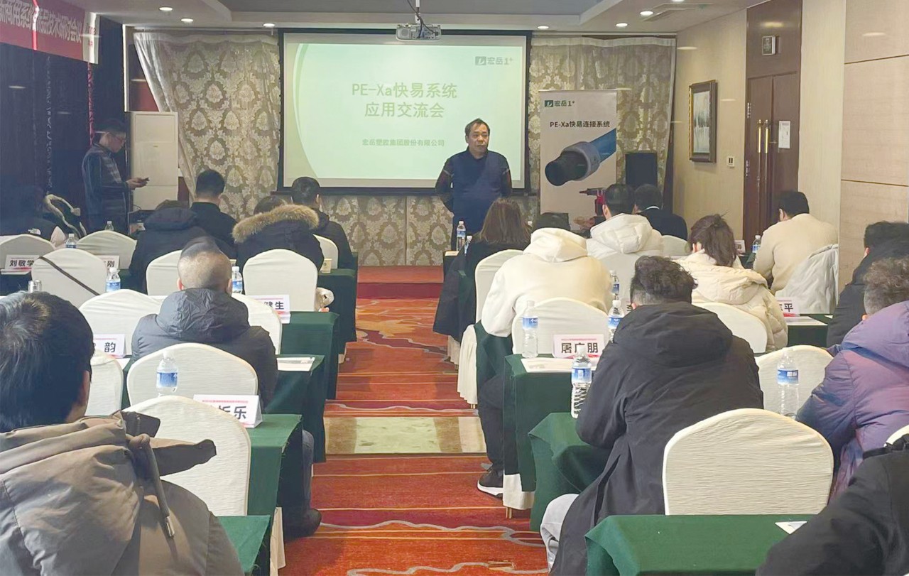 會上,宏岳塑膠集團1+事業部技術工程師針對PE-Xa快易系統優勢及在空調兩聯供系統、給水系統、暖通系統的應用進行了詳盡介紹和現場演示,與會人員對PE-Xa快易系統表現出極大的興趣和認可。